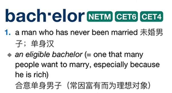 英文单词“eligible”除了表示“合格的、具备条件的”,在找对象的语境下,还可以表示“因富有而被视为合适的理想对象的”,所以“an eligible bachelor”就更加地道了。