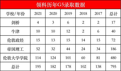 领科每年在牛剑及G5录取方面表现更为亮眼,2021年更是以14分牛剑offer的成绩领跑沪上A-Level学校。
