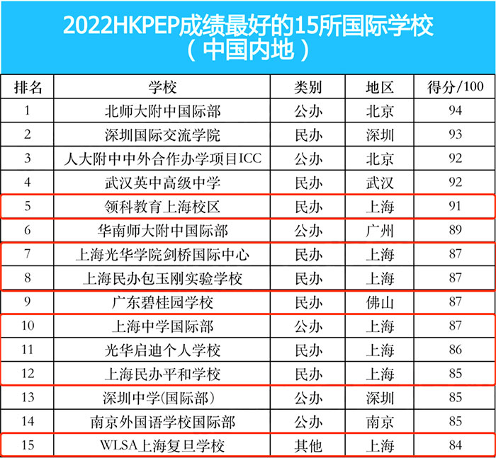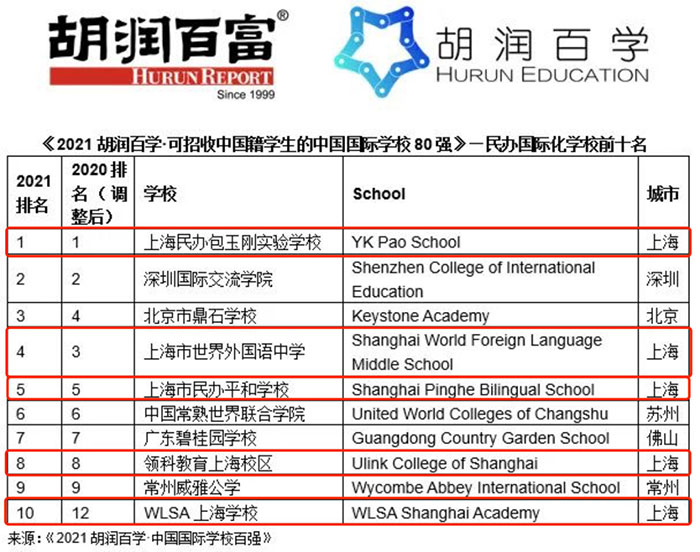 其中民办国际化学校前10名,上海占5所!
