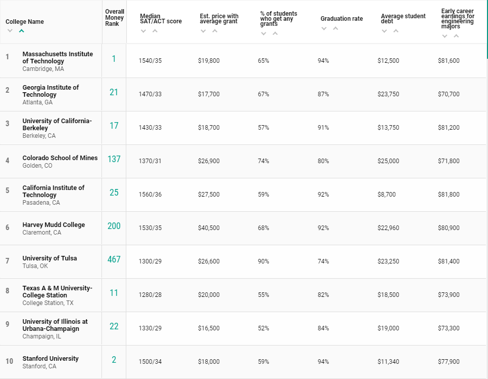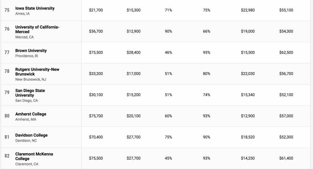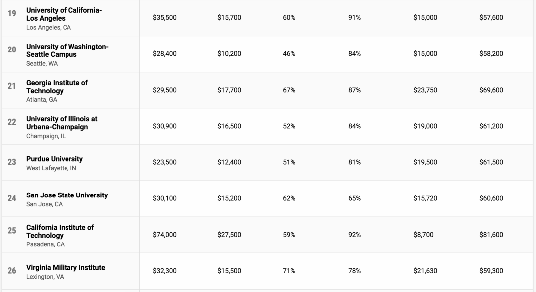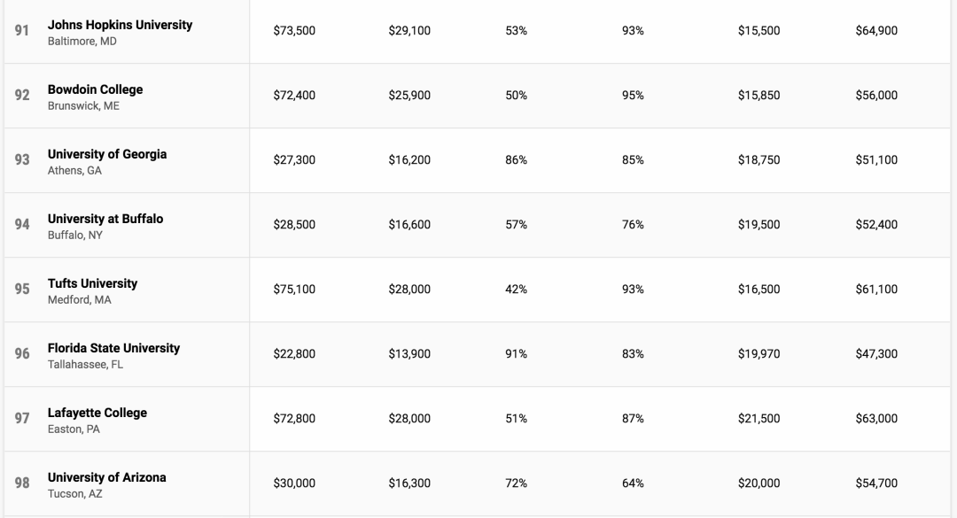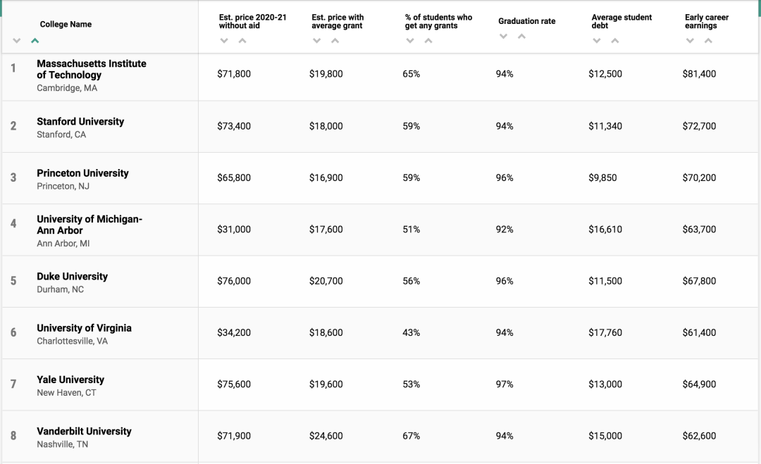 最终,共有739所学校达标,并根据27个详细指标进行排名,评选出了2021年性价比最高的美国大学。