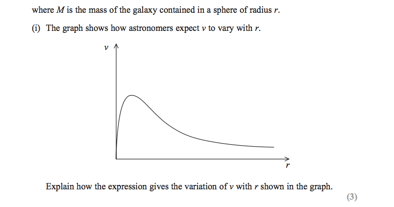 要我的话,我会想一想V与根号R成反比所对应的图形是怎样的,为什么R较小的时候,V反而是增加的呢?那,公式中,真的只有R这一个变量吗?或者,换句话说,M就一定是常数吗?