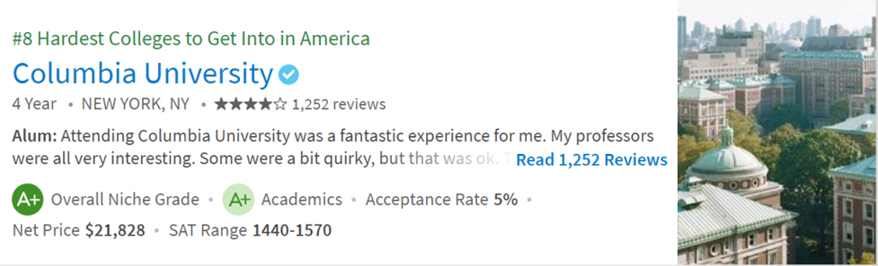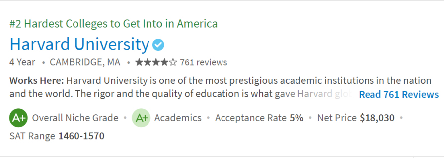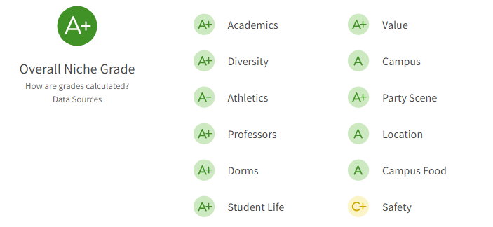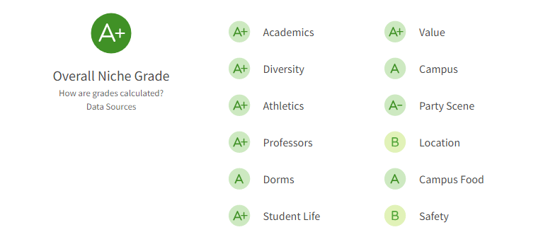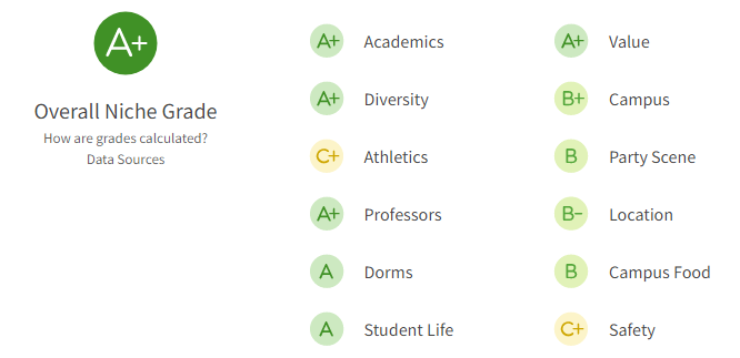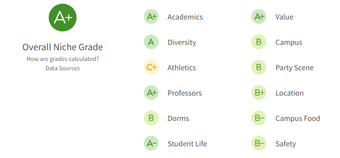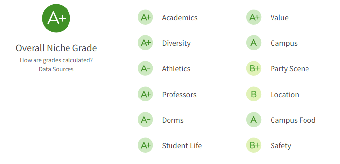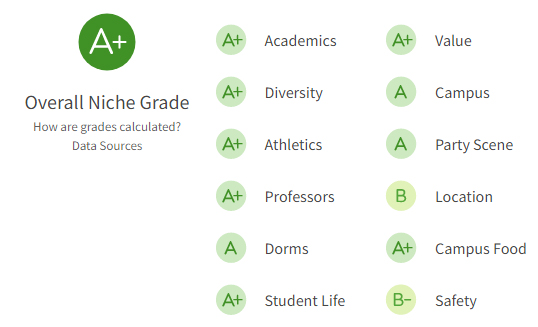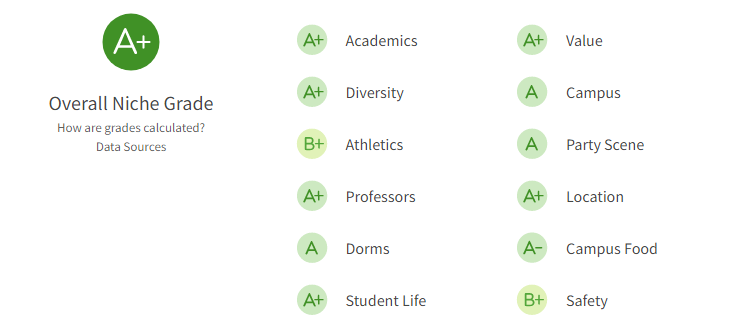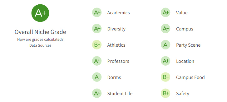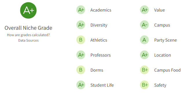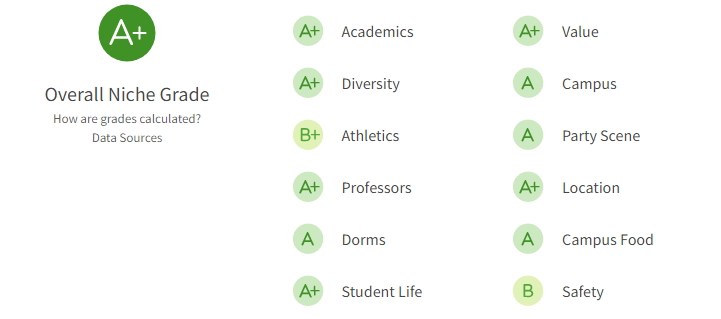 相比于THE、QS等人尽皆知的排名,Niche似乎显得低调的多,但Niche这个排名在美国本土人心中可是很有参考价值的,素有“美国高校版大众点评”之称,是选校参考的一个非常接地气的排名。