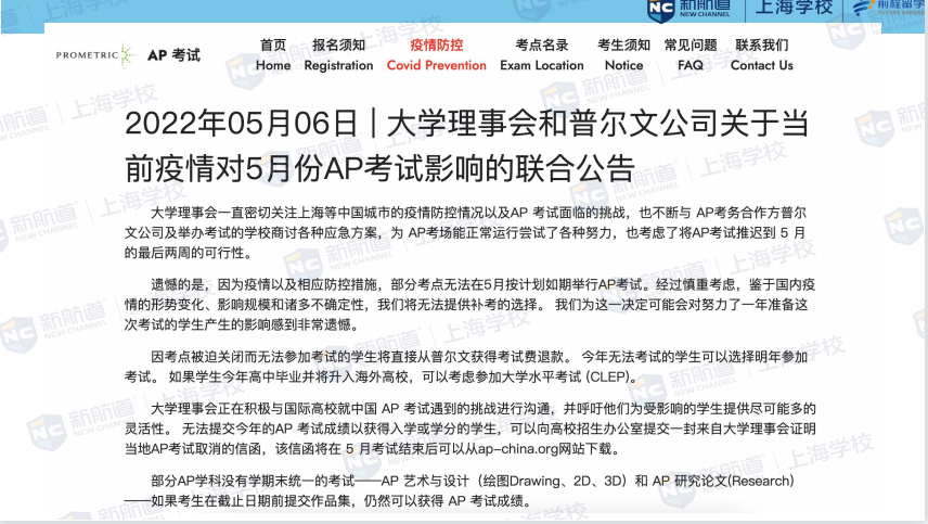 A.鉴于新冠疫情在中国的持续影响规模、我们无法在5月后安排全国范围的AP补考。有很多不确定因素。例如大规模聚集的批准、考试场地和工作人员安排、学校重新开放线下教学,以及考试材料能否没有暂停或滞留的正常运达、以上诸多情况都使得我们无法计划实施AP补考。