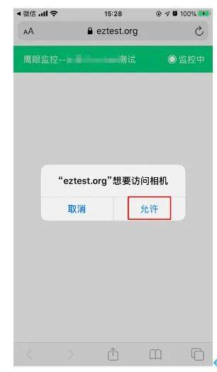 器(谷歌)登录云监考(鹰眼)监控。打开云监考(鹰眼)监控后点击“进入监 控”按钮,进入下一页; 3)允许 eztest.org 访问相机(如下图所示);