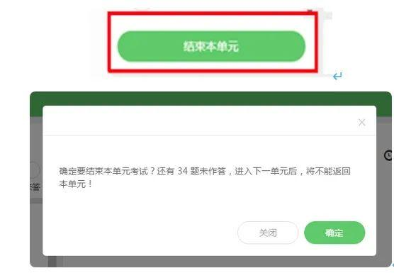 2)若考试包含多个单元,需先结束当前单元后进入下一单元的答题(如下图所