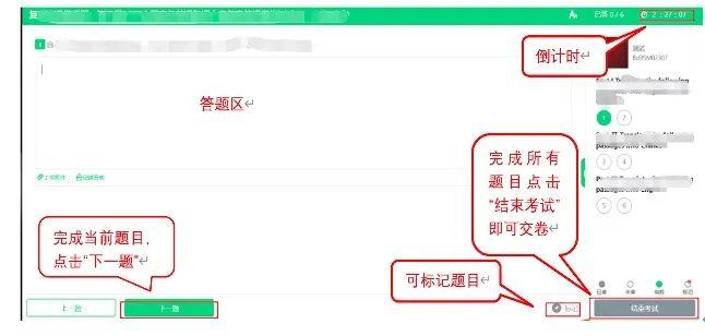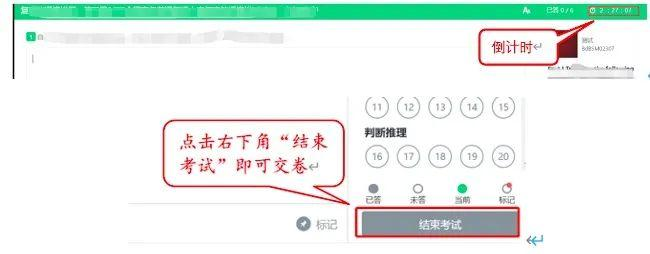 3)考试界面会显示考试剩余时间。答题结束后,考生可以后点击界面右下角的“结