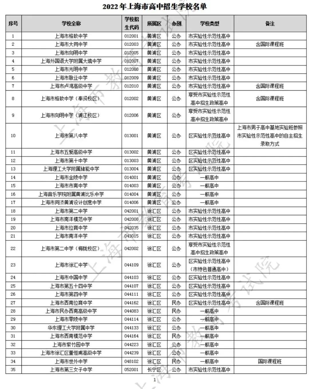 6月11日,市教育考试院发布上海2022年高中招生学校名单!
