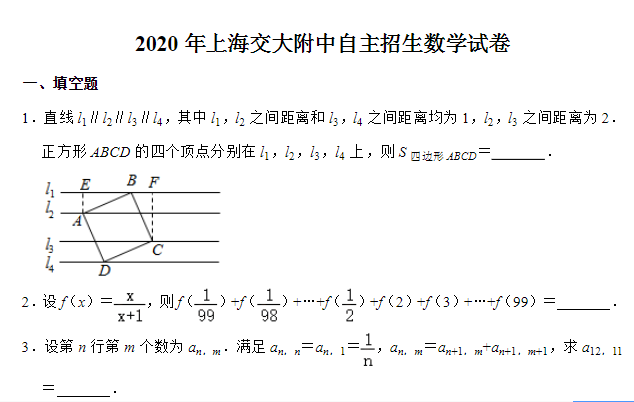 为帮助大家详细了解上海交大附中2020年自招数学考试的题目情况,小编今天为大家提供一份上海交大附中2020年自招数学真题,供参考。
