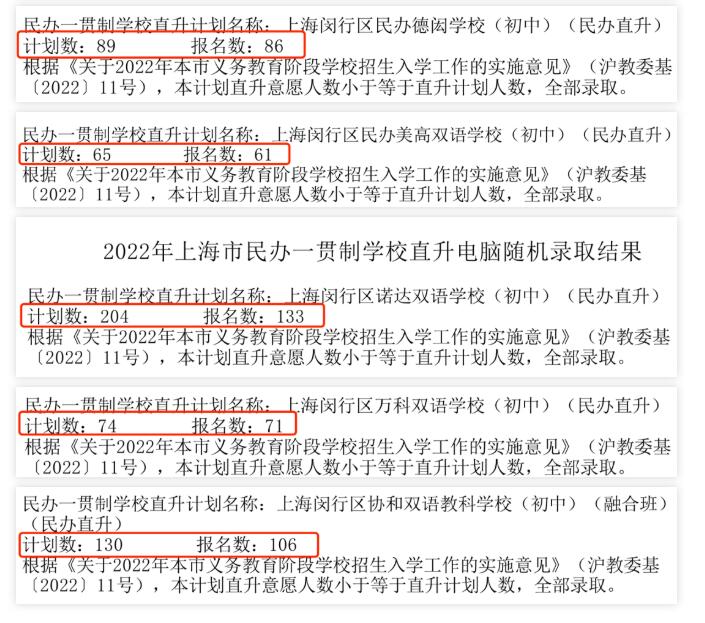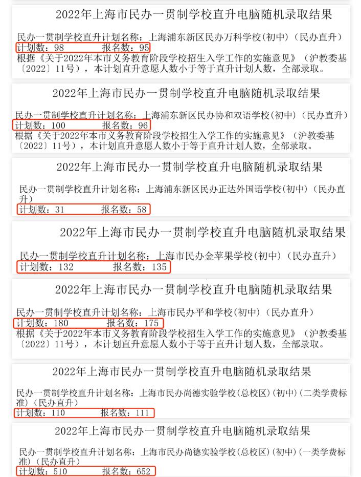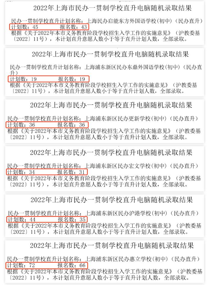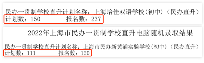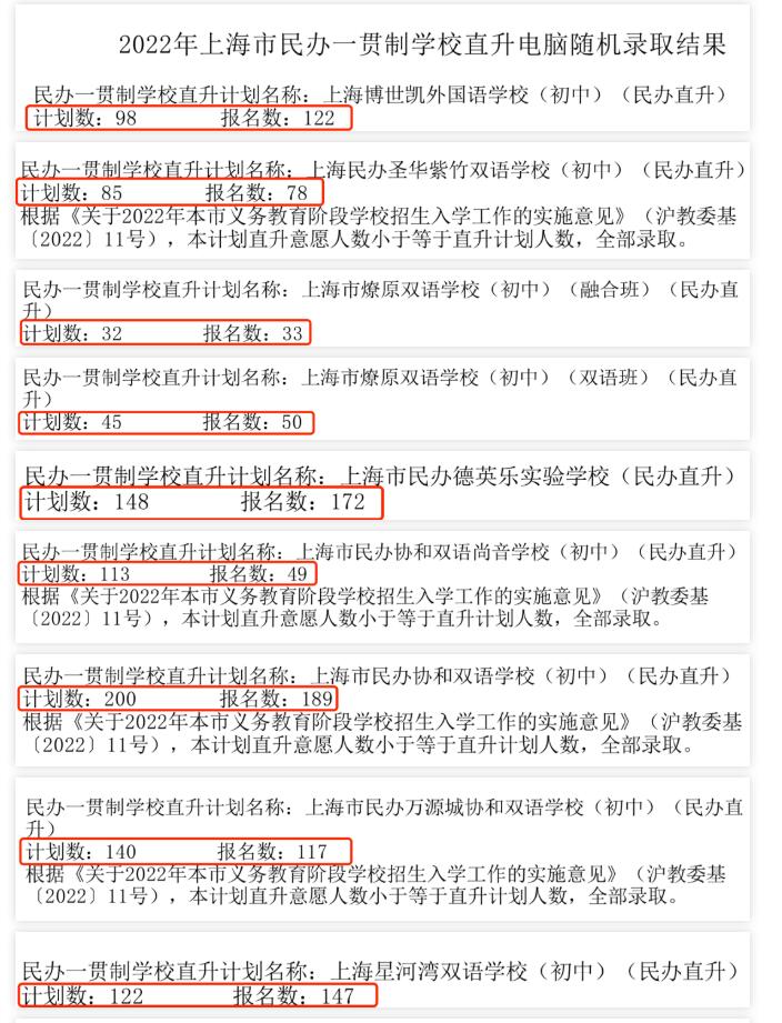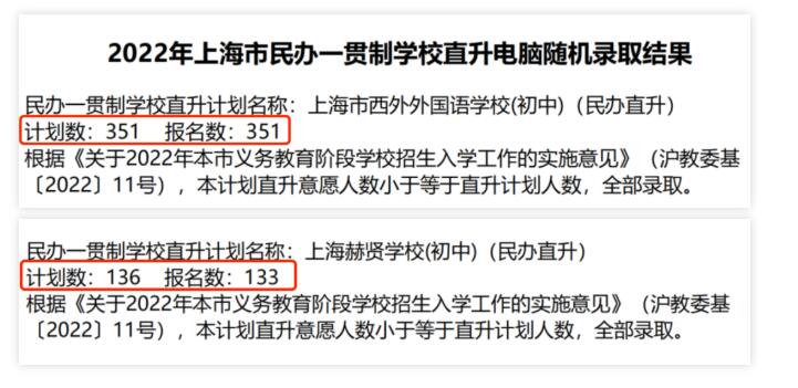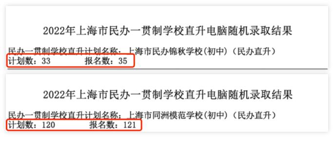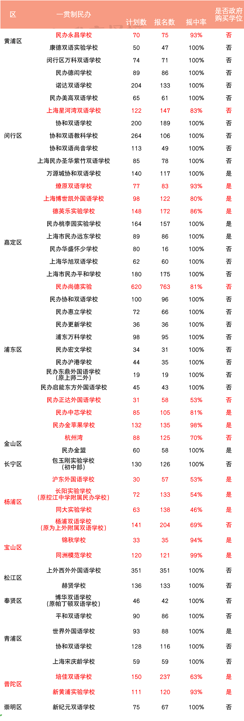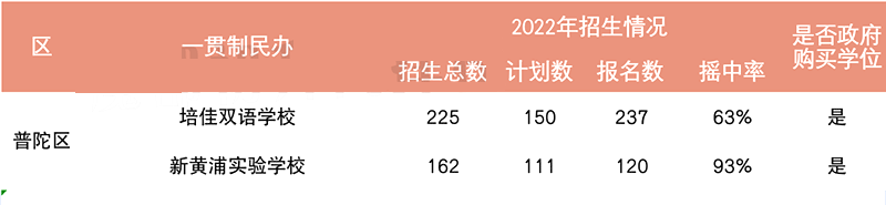 普陀区两所民办一贯制,两所都是政府购买学位,今年报名数均>计划数。