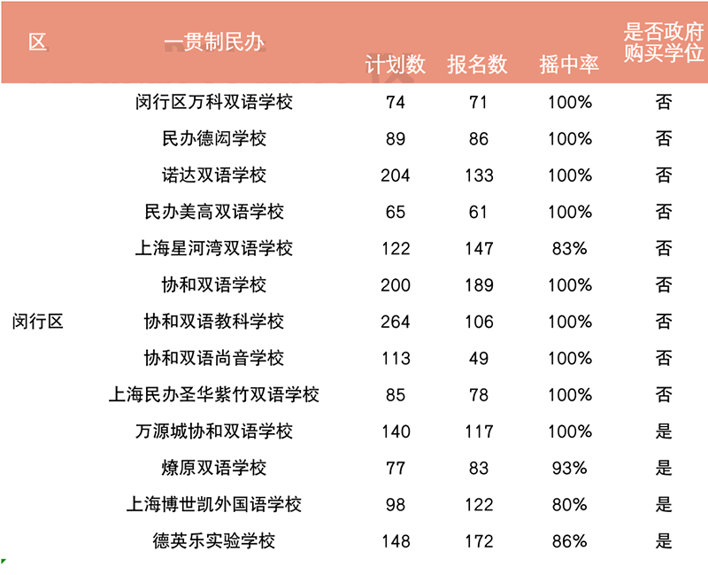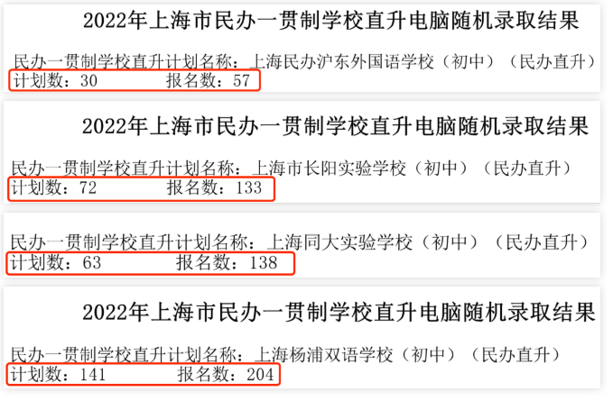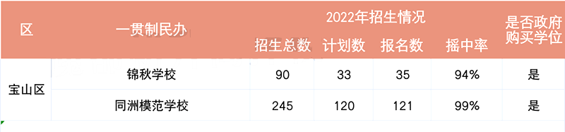 宝山区两所民办一贯制,两所都是政府购买学位,两所学校的报名数均大于计划招生数,需要摇号录取,但这两所学校超额不多,中签率也不低。