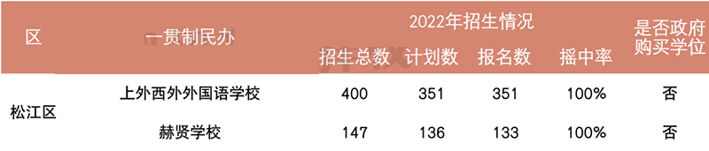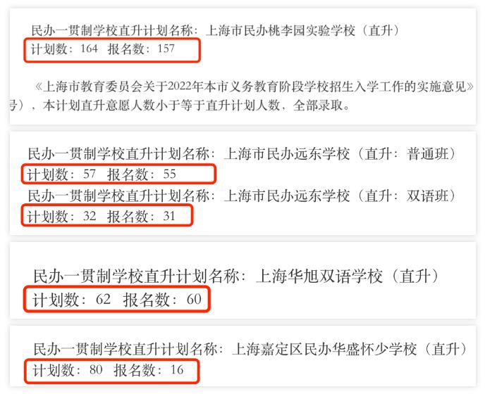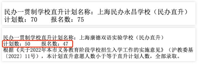 松江区两所民办一贯制,报名数均小于计划招生数,全部录取。