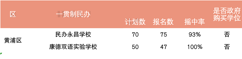 黄浦区两所一贯制,其中民办永昌报名数<计划招生数,需摇号录取,康德双语直接录取。