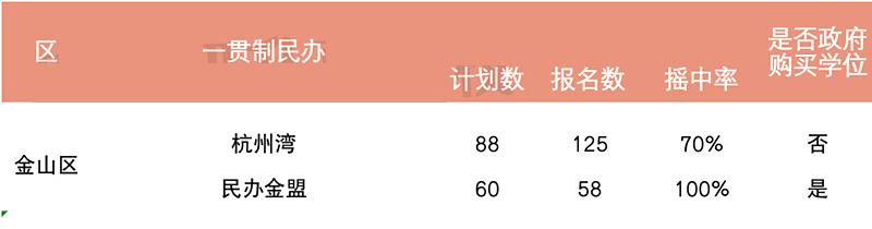 金山区两所一贯制学校、杭州湾需要摇号录取,金盟可以直接录取。
