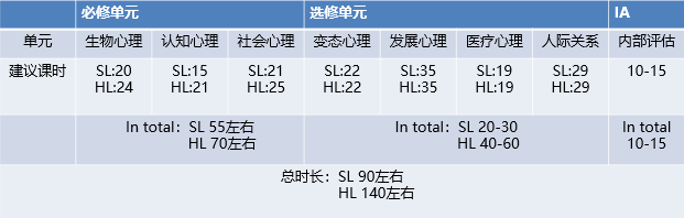 专业IB心理老师建议:不管是选择SL还是HL,可以先通过以下表格了解感兴趣的选修课程时长,并综合考虑各个选修单元的难度,选择相对适合自己的内容!