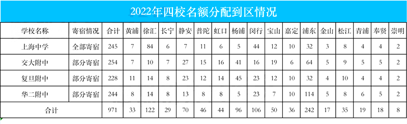 名额分配到区,并不是每一所学校在每一个区都有名额。比如上实验只在浦东有名额分配到区,上师大附中在虹口、青浦、崇明都没有名额到区。