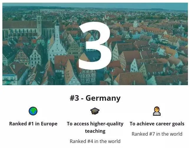 可以看到,这个榜单和QS等学术排名不一样,它会更侧重于学生真实的留学体验,包括学习、生活、文化、个人、发展、交友等,所以能更好的从留学生自己的角度选择一个留学国家。
