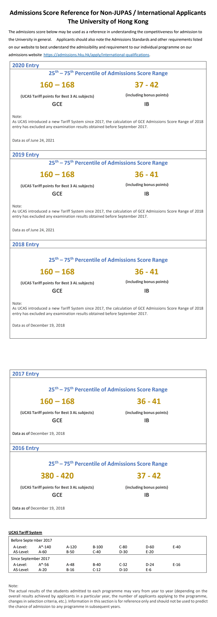 我们来感受一下港大官方公布的近5年录取标化成绩要求收据(不包含2021年)。