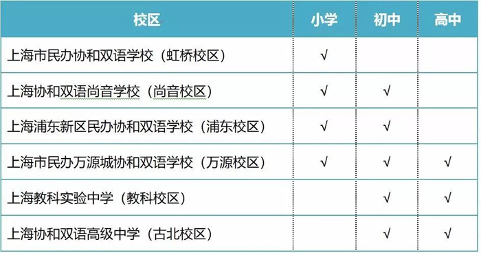 每个校区开设的班级不尽相同,目前虹桥校区三种班型都有,尚音校区有国际班和精英班,浦东校区有国际班和先锋班,而万源校区只有先锋班。