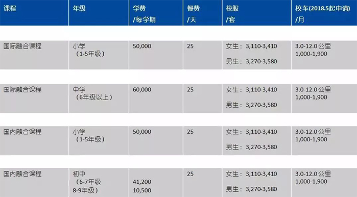 备注 : 高中(国内部):闵行区户籍学生每学年享受1300元政府补贴,家庭经济困难学生可享受国家助学金最高4220元/每学期
