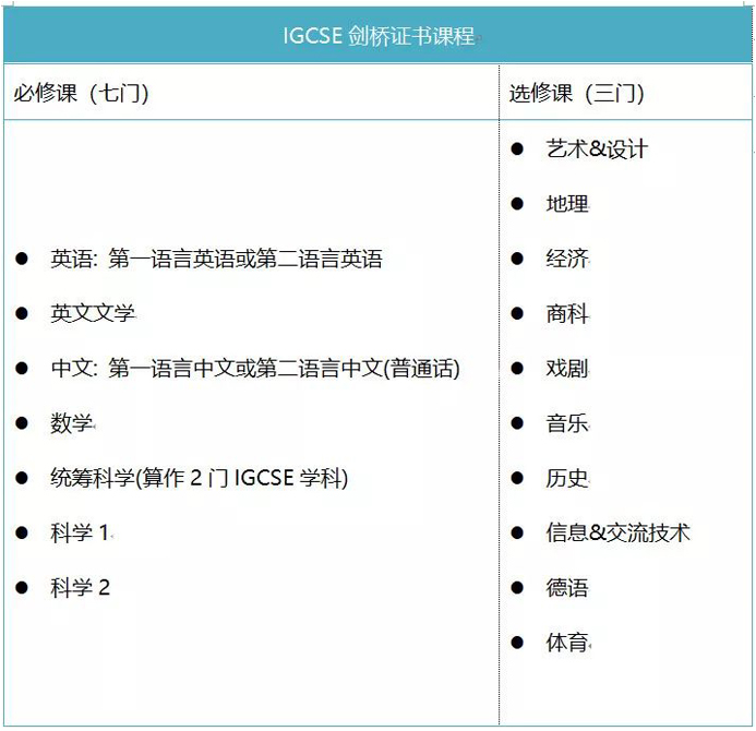IGCSE剑桥证书课程:参照国际标准,七门必修课+三门选修课