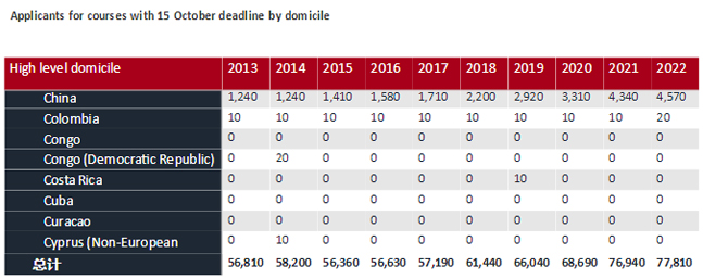 再来看2022年的趋势,从上图已有的数据可以看到已经有4570名中国学生申请英国留学,同去年相比也有很大的增长。