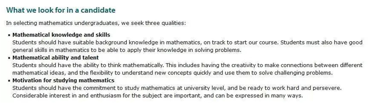 下图是剑桥大学数学系对学生的要求,具有一定的代表性,从中来看牛津、剑桥更青睐什么样的学生。