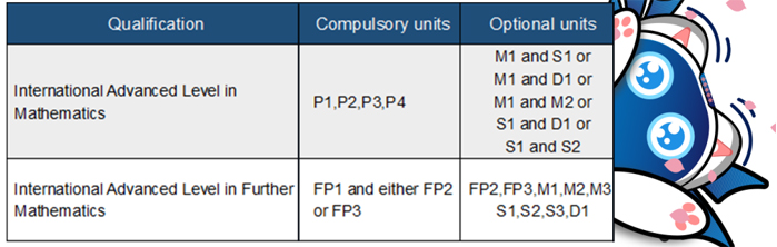 爱德思考试局的International Advanced Levels数学相关课程总共有三个科目,分别为基础数学(Mathematics)、进阶数学(Further Mathematics)和纯数学(Pure Mathematics),由于纯数在单元的选择上与基础数学、进阶数学有所重复,中国学生常考的科目为基础数学和进阶数学,以下就基础数学和进阶数学的单元选择做一个分析。