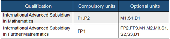 IAL数学共有14个单元,P1、P2、P3、P4、M1、M2、M3、S1、S2、S3、D1、FP1、FP2、FP3,基础数学和进阶数学各需要6个单元才能最终结算取得证书。