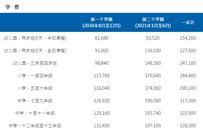 Year 12-13学费32.8万人民币一年