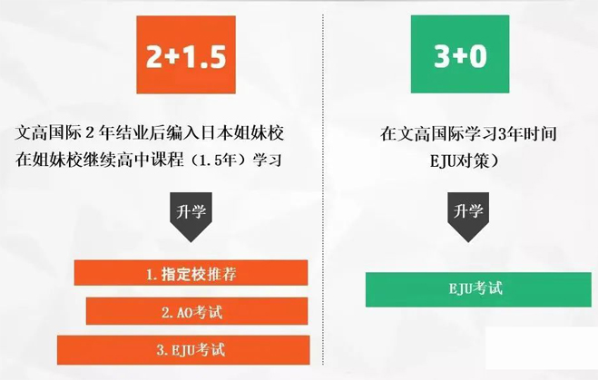 学生在我校完成高一、高二的学习后,可赴日本姐妹校完成剩余高中学业,直接在日本参加考试申请大学(以国际生身份可以申请到更优质的高校)
