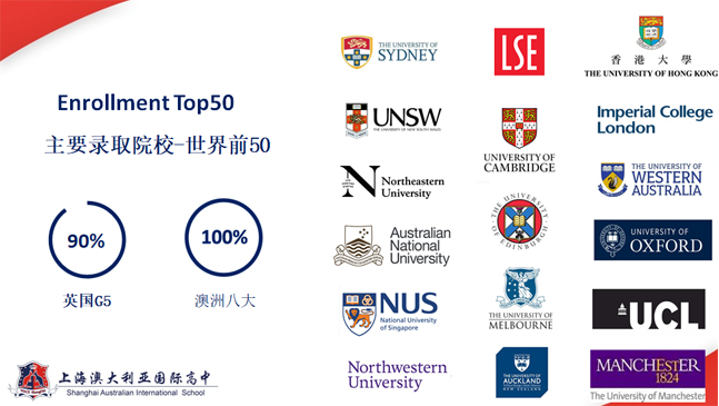 其中,50%的在校平时成绩从十一年级开始计算,包括平时的作业、期中考试、单元考试,以及小组讨论、演讲活动等。另外50%大学入学考试成绩,就是学生的毕业考试,在每年1月份进行。上海澳大利亚国际高中不仅是西澳洲教育部下的海外精英公立高中,同时也是澳洲大学入学考点,所以学生无需再去海外考试,无时差同步澳洲高考时间。