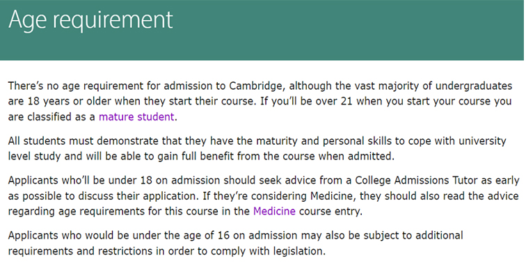 普遍来讲,入学剑桥时未满16岁的申请人,也可能会受其他规定及限制。