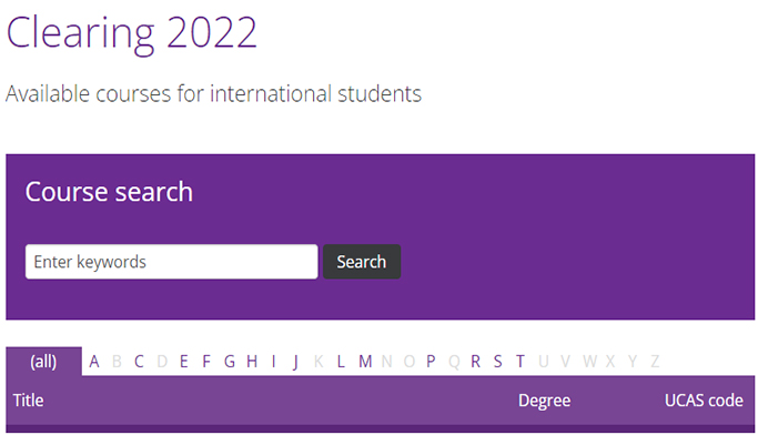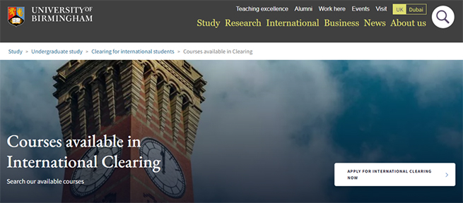 本科补录今年大多数课程都进入到了Clearing阶段,详细信息可在下面链接中查看:https://www.birmingham.ac.uk/undergraduate/clearing-adjustment/international/Clearing-International.aspx#CourseComplete_AtoZTab