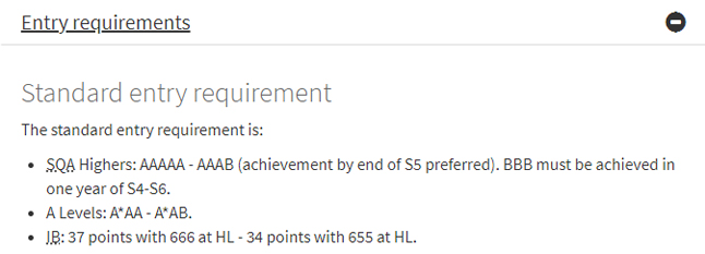 爱丁堡大学大部分本科专业A-Level申请要求都在AAA-ABB之间,大部分拿到offer的同学成绩为AAA。