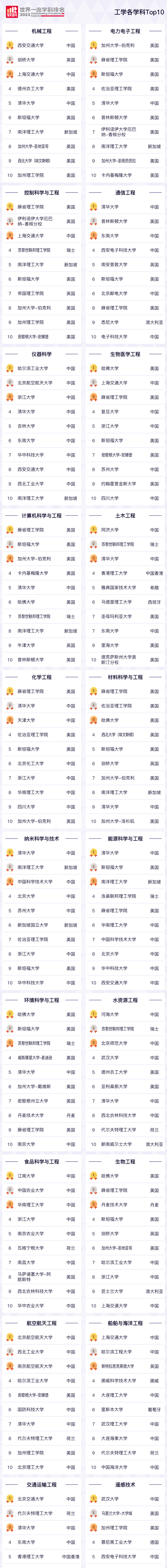 总体上看,美国大学在各学科排名上仍然占据绝对优势,在32个学科中夺冠,上榜总次数达到4714次。
