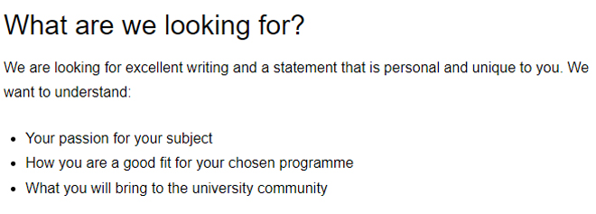 UCL表示寻找的是专属于个人的优秀写作和陈述,他们希望了解:
