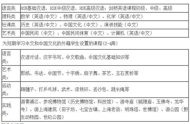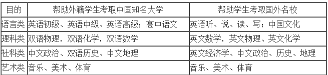 提供以英文课程为基础,中文课程学习为补充的综合课程。该课程为外籍学生回国后衔接本国课程提供基础知识学习,并加强汉语学习。
