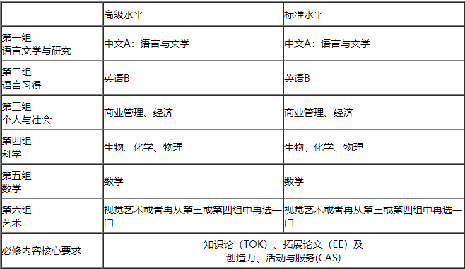IBDP各年级课程设置如下: