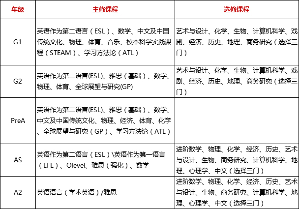 备注:课程开设会根据当学年学生选课情况略有调整,最终解释权归上海阿德科特学校所有。