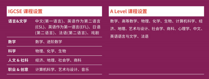 上海阿德科特学校开设A-level课程,课程体系包括四个板块:核心学术课程、素质拓展课程、科学实践课程和校本学生发展课程。 学术核心课程建立在剑桥大学国际考评部的考试大纲的基础上,开设IGCSE&A-Level 共计28门学术课程。