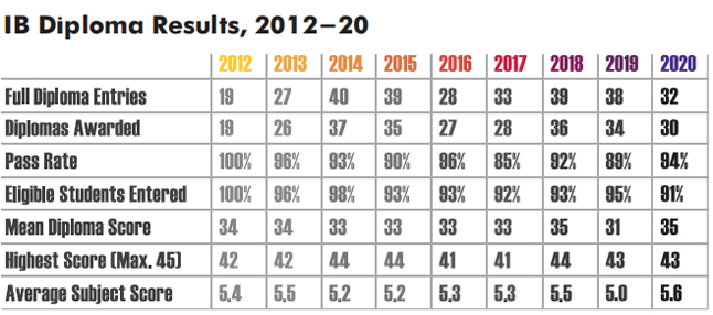 2020年NIS共发出30份IB文凭,通过率达到94%,平均分35分,最高分43分(满分45分)。