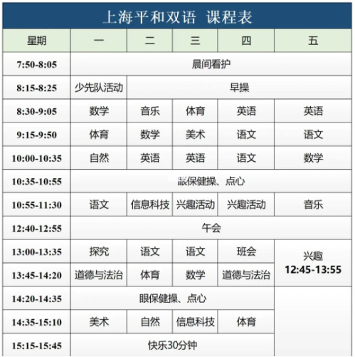 学校开设了40门左右的选修课供学生选择,如:上海交响乐团、白领丽人跆拳道俱乐部等等。