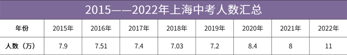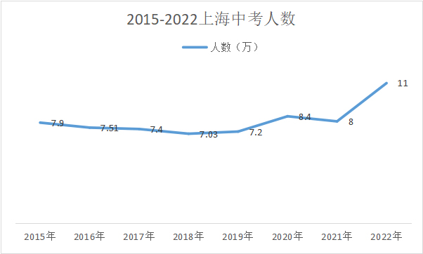 首先,我们先来细数一下2015——2022年上海中考人数。