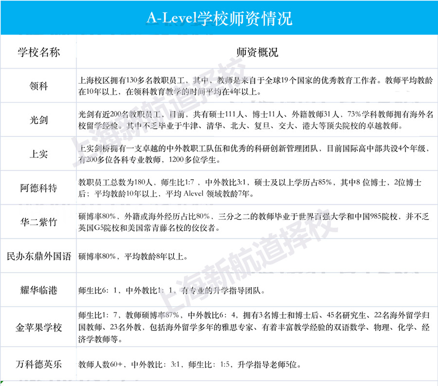 下面帮家长们整理出来了最新上海优质A-level学校师资情况介绍