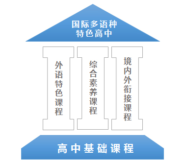 以高中课程为基石,“一带一路”沿线国家语种教学(西班牙语、日语等)为特色,为学生境内外多途径升学打好高中学历及语言基础。