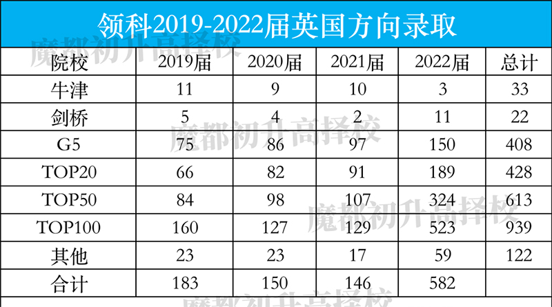 近四年,领科共收获了55枚牛剑offer,其中33枚牛津,22枚剑桥。英国G5录取总数为408。