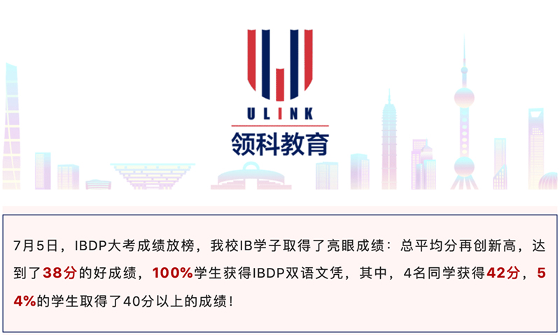 而领科除了A-Level,还有IB课程,早在今年IB放榜时,领科就公布了今年大考的IB均分,高达38分!4名同学获得42分,54%的学生取得40分以上的成绩,100%学生获得IBDP双语文凭。