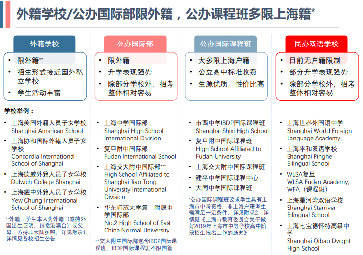 其中,外籍学校仅招收外籍学生,一般为K12模式,学制为12年;优势在于纯英授课环境,劣势在于学校约束性不强,学生很容易放飞自我;