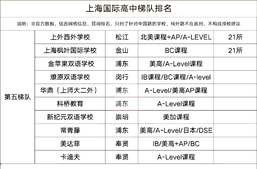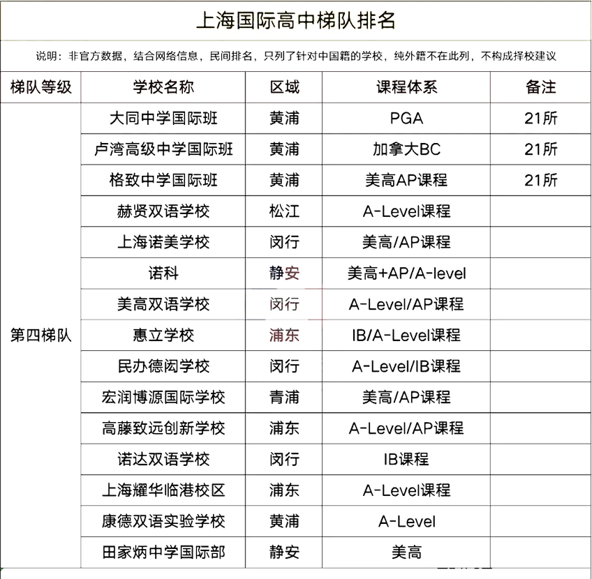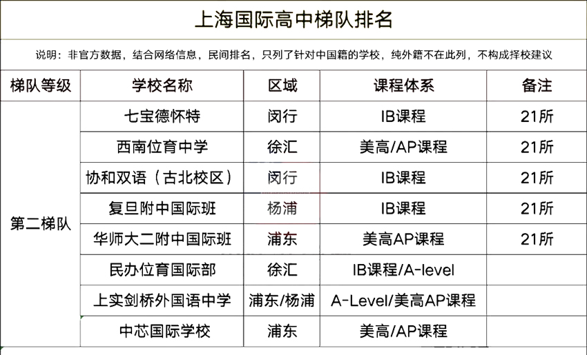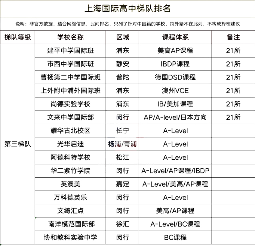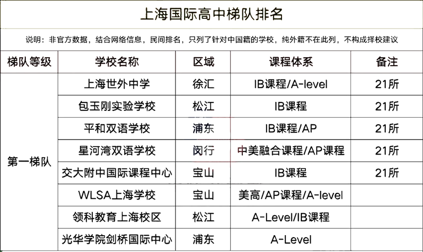 除此之外,第一梯队还有首个“哈耶普斯麻”大满贯的WSLA上海、A-Level巨头领科上海和光华剑桥,也进入了第一梯队。