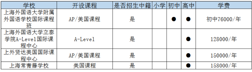 虹口区4所国际高中,课程以AP/美国课程、A level为主。